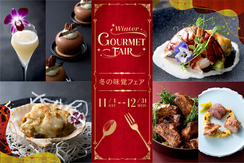 冬を代表する紅ズワイガニ、オマール海老など海の幸、ロゼ色に輝くローストビーフ、華やかケーキなど、魅力的なグルメが勢揃い。グランコート名古屋で冬の美味しさに出会えます。