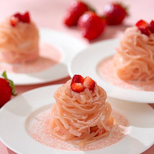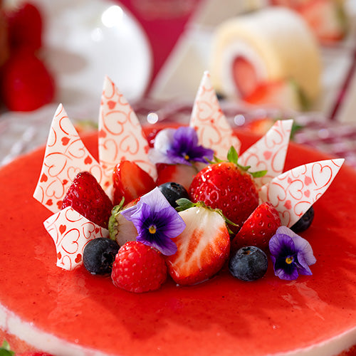 真っ赤に輝く苺を主役に、ペストリーシェフが織りなす華やかなデザートがずらり。絞りたてのモンブランに、まるごと苺のロールケーキなど、どこを切り取っても至福のひと皿。苺の香りに包まれる、夢のようなひとときをお楽しみください。