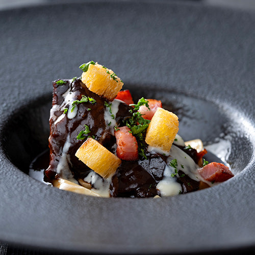 • <温製オードヴル>牛ホホ肉の赤ワイン煮込み ブルギニオン風
