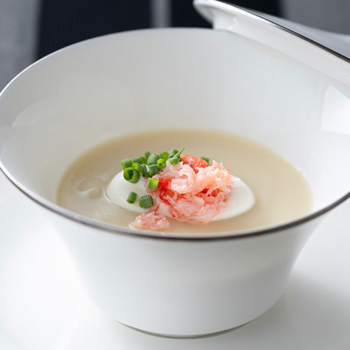• <スープ>蟹身の入ったトリュフ香るカリフラワーのスープ