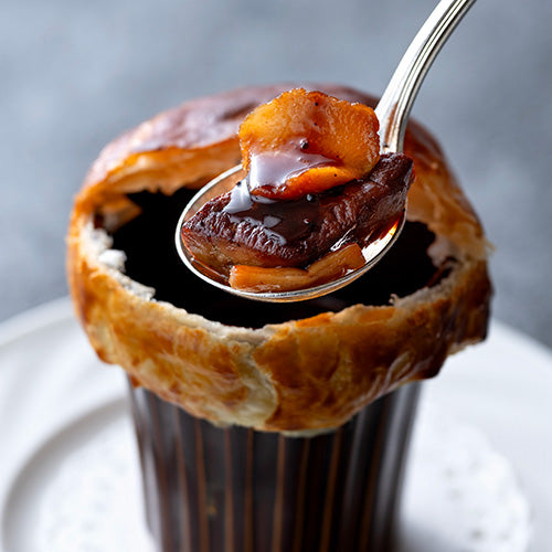 <オードヴル>フォアグラと茸とクワイのパイ包み焼き トリュフのソースで