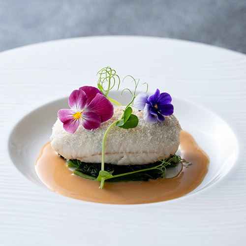 <魚料理>舌平目と小海老のファルスの白ワイン蒸し アルベールソース
