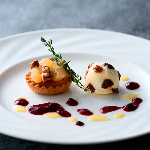<デザート>林檎と胡桃のタルトレット ラムレーズンアイスクリーム