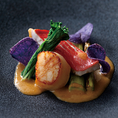 金目鯛のエチュベと帆立のポワレ トリュフ香る渡り蟹のソース
