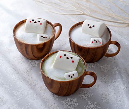 シマエナガに見立てたマシュマロをトッピングした、可愛くて心温まるホットドリンクです。
