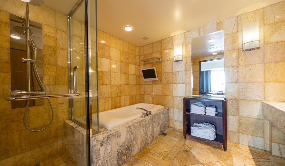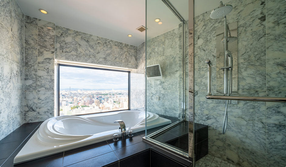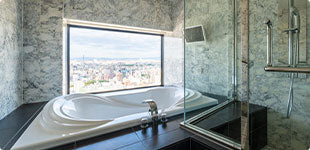 浴室から景色を一望できるお部屋もありごゆっくりとバスタイムをお楽しみいただけます。